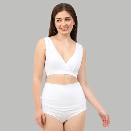 Maternity and Nursing Sleep Bra and High Waist Panty- White